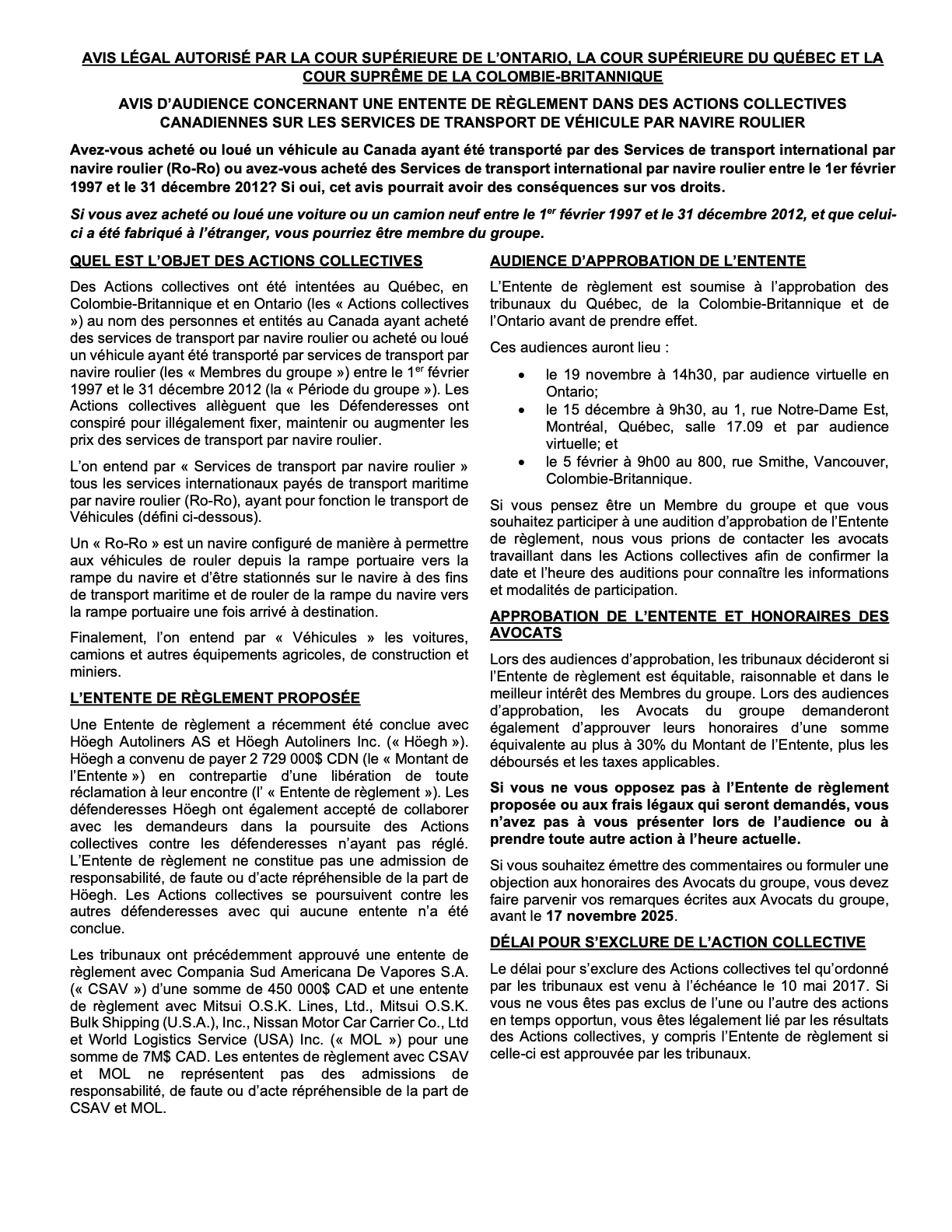Home Events - Consumers Council of Canada Class Action Notice Settlement Approval Hearing – Canadian Vehicle Services Class Actions